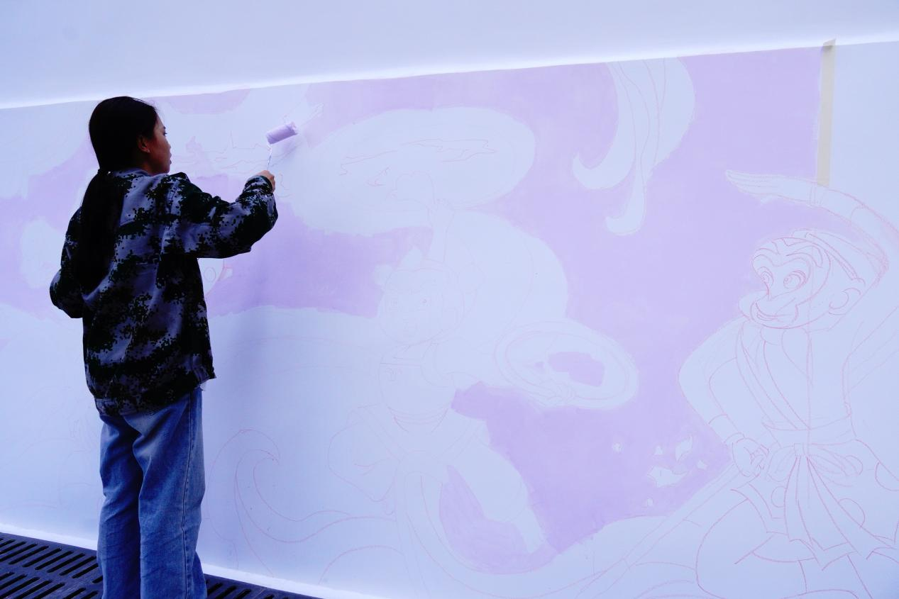 一笔一故事、一墙一风景。校园墙绘,作为一种独特的艺术形式,融合了创意与艺术的审美,呈现在校园生活之中。陈杰带领24动漫1班学生绘制校园墙绘。此次活动以发挥学院的专业优势,围绕“壮美广西建设,弘扬民族文化非遗文化”的校园墙绘实践活动顺利开展。创作过程中,由陈杰指导学生绘制墙绘的要求、步骤、再如何调色与上色、刻画局部细节、调整画面的整体感等。同学们热情满满,严格按照涉及图案和流程,从线条勾勒到色彩填充,操作精细入微,追求高标准的线条流畅度与色彩精确度,展现出高度的专业性。