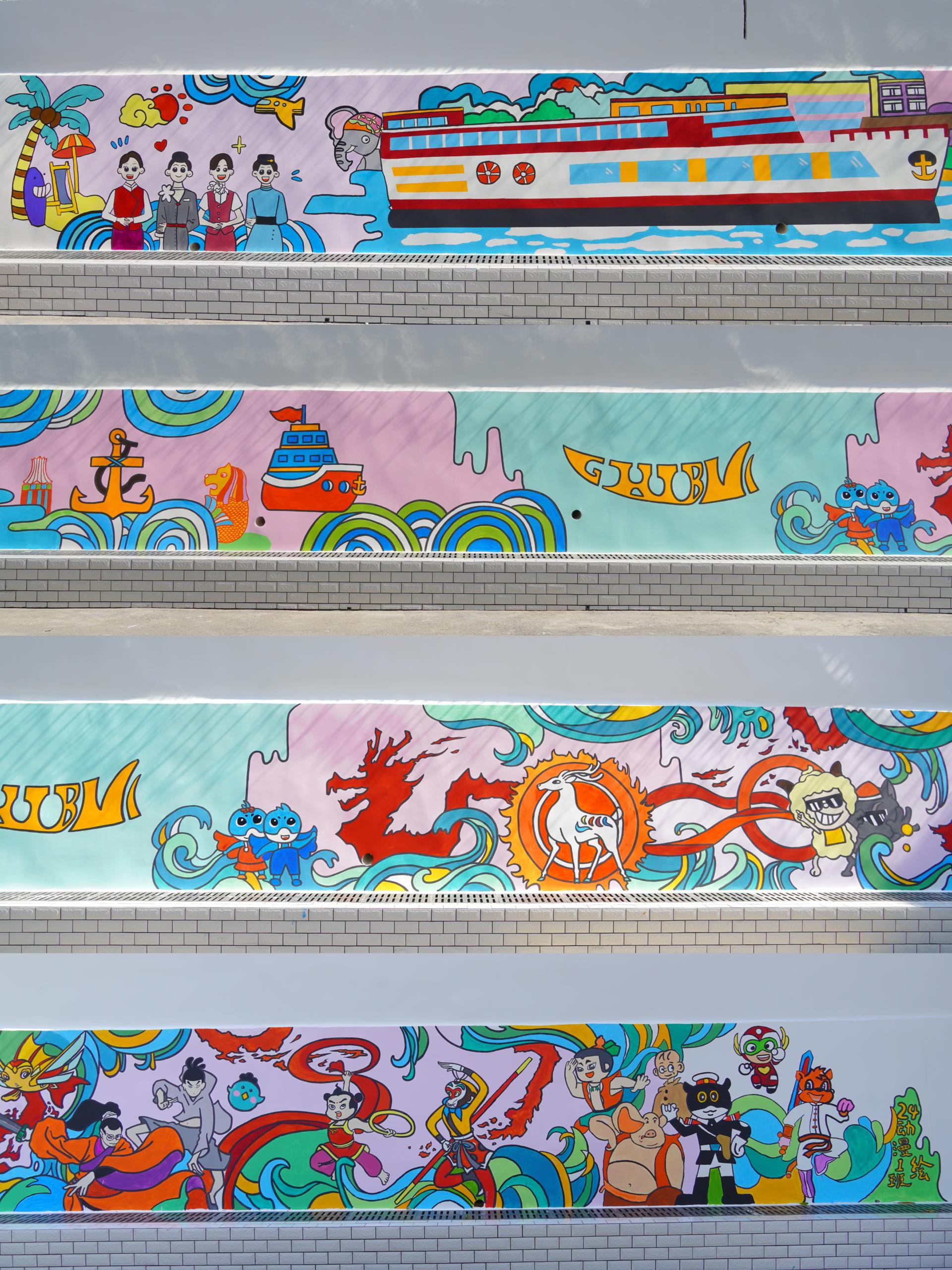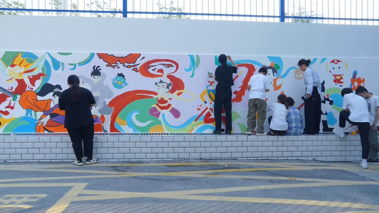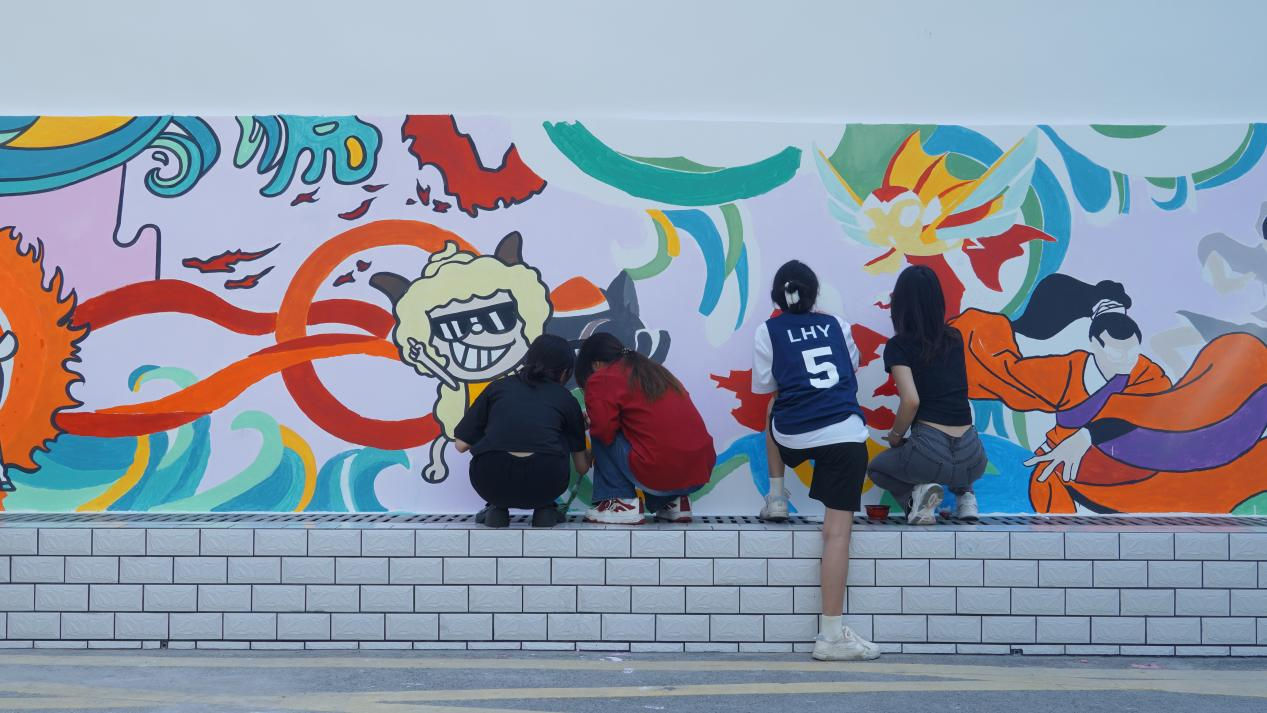最后,在师生们几天的共同努力下,绘制出了38米的校园壮美文化墙绘,呈现出震撼的艺术视觉盛宴,使路过的师生们都纷纷驻足停留与欣赏,感受艺术带来的灵魂魅力,成为校园中一道亮丽的风景线。