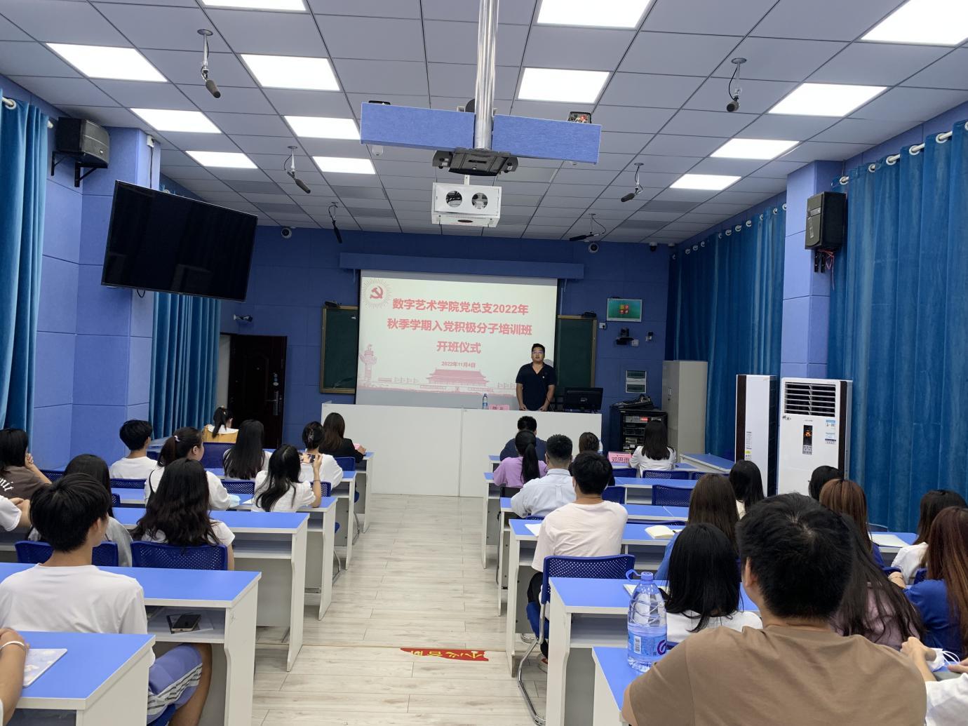 为进一步提高入党积极分子思想觉悟,端正入党动机,确保党员发展质量,数字艺术学院党总支于11月4日在3栋112多媒体教室举行2022年秋季学期入党积极分子培训班开班仪式。数字艺术学院党总支专职副书记敬礼、教工党支部和学生党支部支委会委员代表、专职组织员及入党积极分子培训学员参加开班仪式,本次开班仪式由学生党支部书记程琳丽主持。开班仪式在雄壮的国歌声中拉开帷幕。