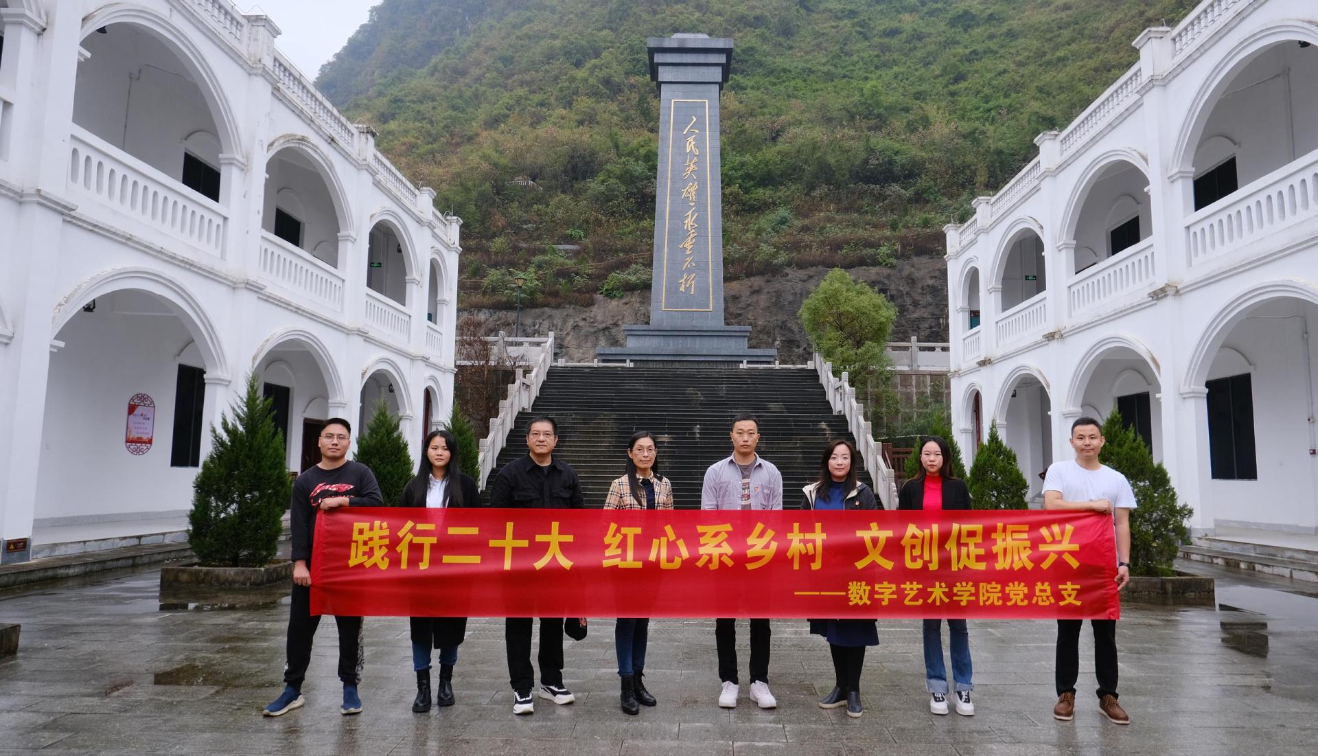 11月17-18日,在全国上下掀起学习党的二十大精神热潮,进一步落实党中央关于乡村振兴工作的号召之际,数字艺术学院院长曾海文率领团队一行9人,以专任教师余文龙代表学校赴大化瑶族自治县职业技术学校(简称:大化职校)开展乡村振兴教育“组团式”帮扶工作为契机,赴大化县开展乡村振兴职教帮扶交流并开展党史学习教育。学院副院长叶军、办公室主任谢娉婷、艺术设计教研室主任谢雨珍以及部分党员教师代表、招生就业干事及创新创业项目团队学生代表等参加了此次活动。