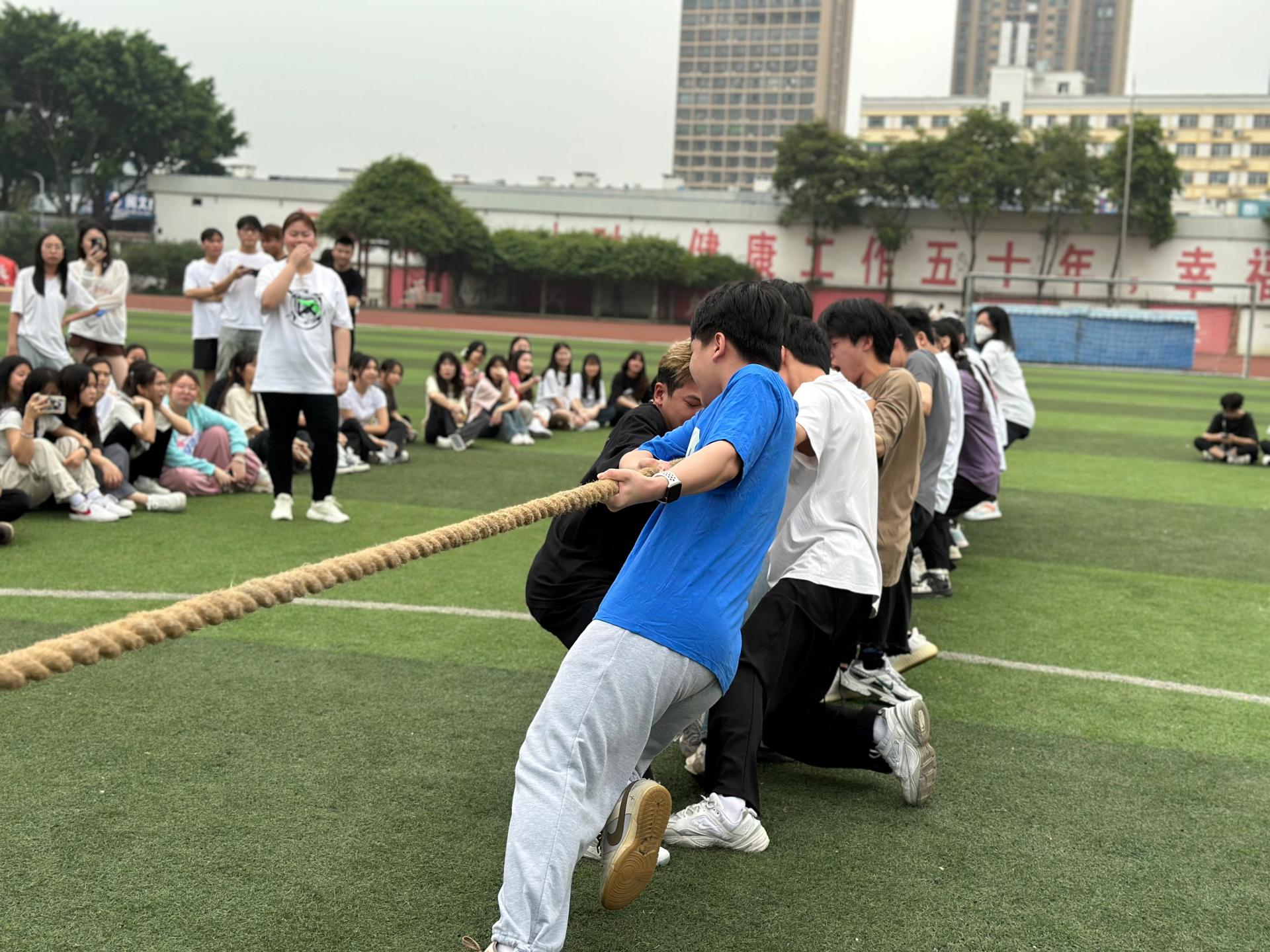 4月17日中午,我院在大学路校区田径场举行拔河比赛。2021级和2022级共33个班级参加,各班队伍由10男10女组成,比赛采用小组赛和淘汰赛相结合的方式。赛场上,队员们心往一处使,劲往一处发,齐心协力全力夺胜。在现场观看比赛的老师和同学们更是焦急万分,大声呐喊,为参赛队员们加油打气。经过激烈的角逐,21产品3班获得一等奖;22动漫7班和21动漫4班获得二等奖;21动漫2班、21产品2班、21动漫3班、22电竞1班和22产品2班获得三等奖。