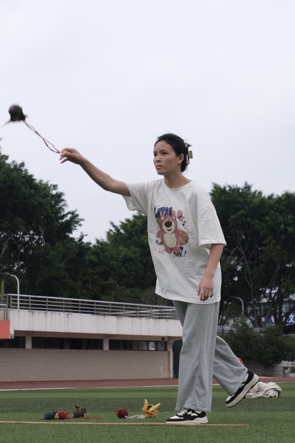 4月18日中午,在大学路校区田径场举行本次民族体育竞技比赛的第二个项目——抛绣球。抛绣球是“壮族三月三”的一项传统活动,同学们一抛一接,配合默契,每一次进球,都赢得了阵阵喝彩。最终,21动漫9班二队获得一等奖;22动漫8班二队、22产品5班一队获得二等奖;22动漫9班、22动漫2班、22动漫8班三队、22动漫3班、22产品2班、21动漫8班和22动漫7班获得三等奖。