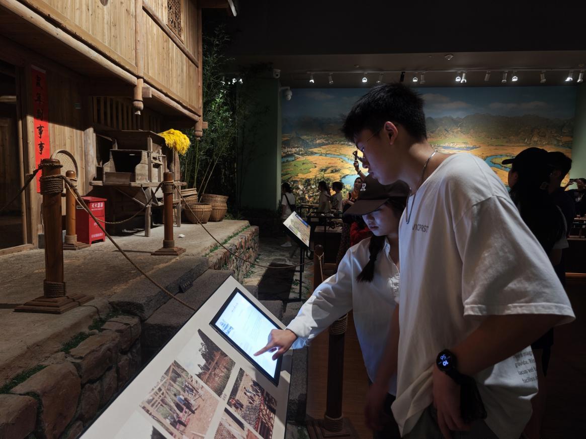 通过博物馆中的触摸屏了解广西民族建筑样式
