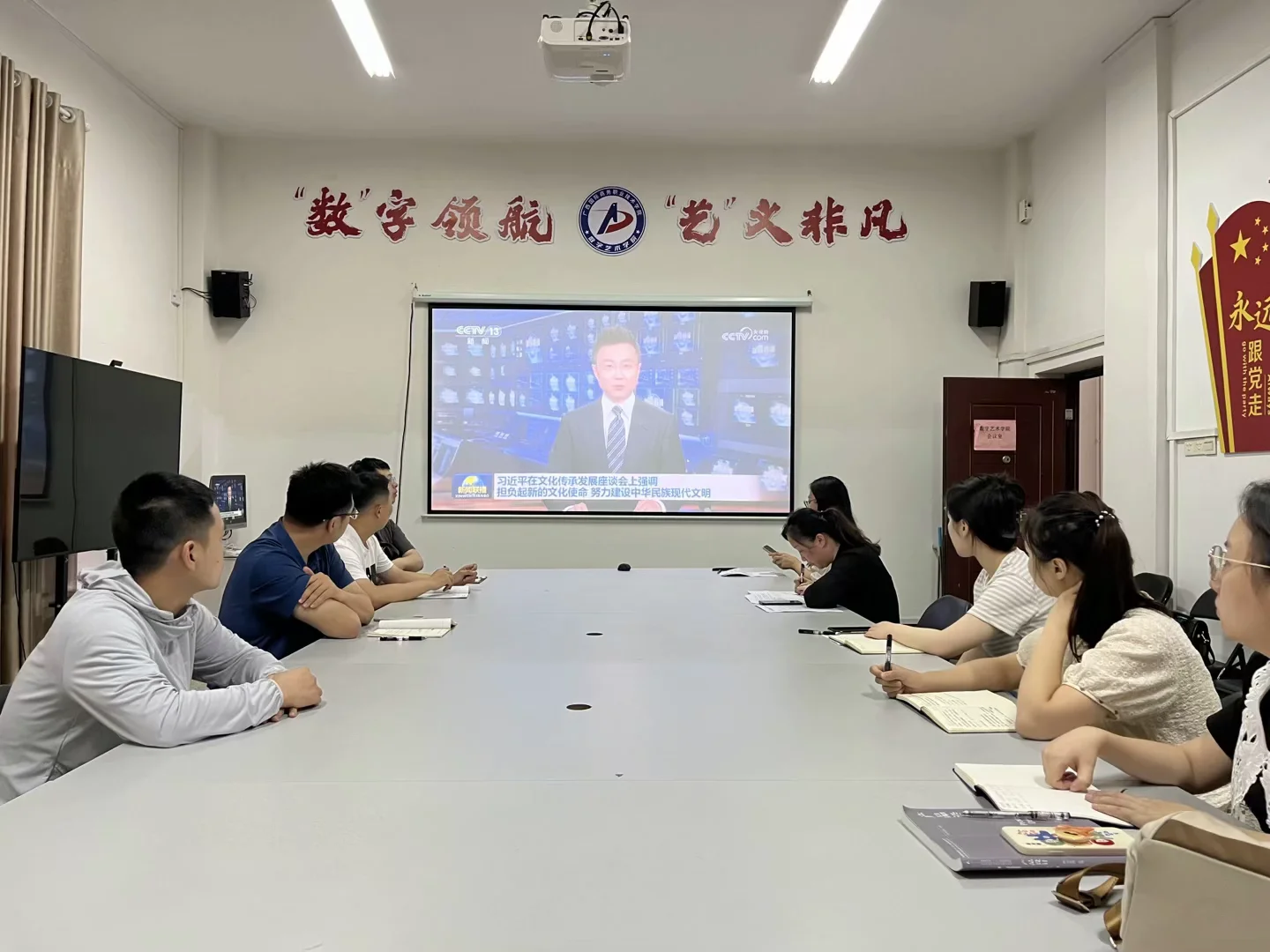 随后王文莉带领教工党支部全体党员分别认真学习了习近平总书记在中共中央政治局就建设教育强国进行第五次集体学习时的重要讲话精神、习近平总书记在北京出席文化传承发展座谈会时的重要讲话精神以及习近平总书记在广东、陕西、内蒙古考察时关于主题教育方面的重要讲话精神等内容,并观看了相关视频。数字艺术学院党总支副书记黄恒拾作为普通党员发言,从“职业教育的高质量发展”等方面解读了“职业教育前途广阔,大有可为”的丰富内涵和重大意义。