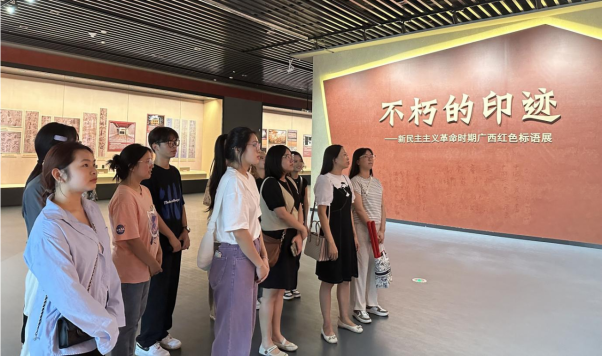 师生代表在广西红色标语展厅进行合影