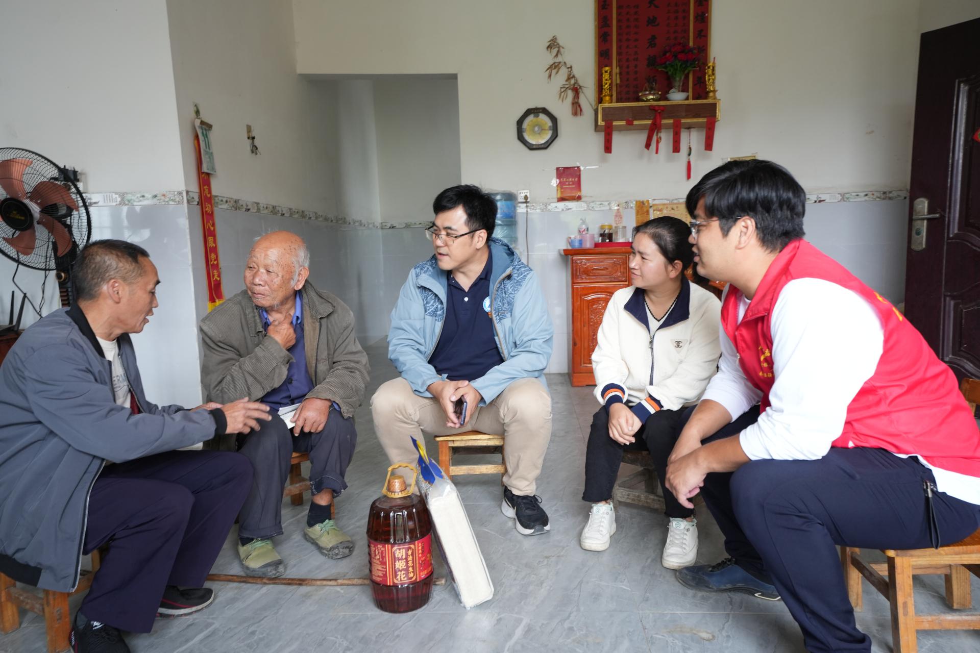 随后,在里湖乡干部和甲木村村委干部的陪同下,敬礼带领教师党员一同走访慰问甲木村脱贫监测户老党员。交流中,黄恒拾、敬礼关切询问老党员的生活起居和身体状况,为他们送上组织的关怀与温暖。