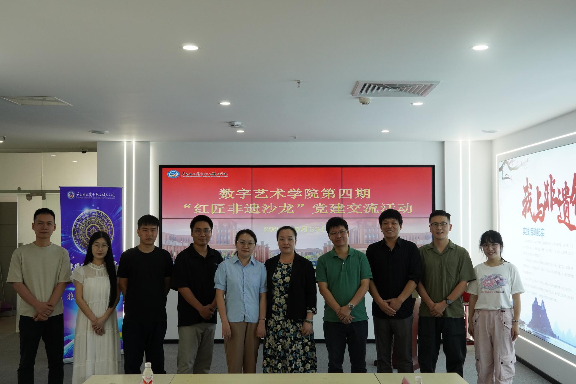 6月20日上午,广西民族大学科技史与科技文化研究院邹桂森副教授率博士研学团邵朋飞、赵逸飞、杨小平等一行四人到访数字艺术学院。双方在大学路校区民族文化传承创新职教基地开展了第四期“红匠非遗沙龙”主题党建交流活动,并就“中国南方与东南亚铜鼓文化”的议题开展了产学研交流,数字艺术学院党总支书记黄恒拾、办公室主任谢娉婷、教工支部及学生支部党员教师代表参加了本次活动。