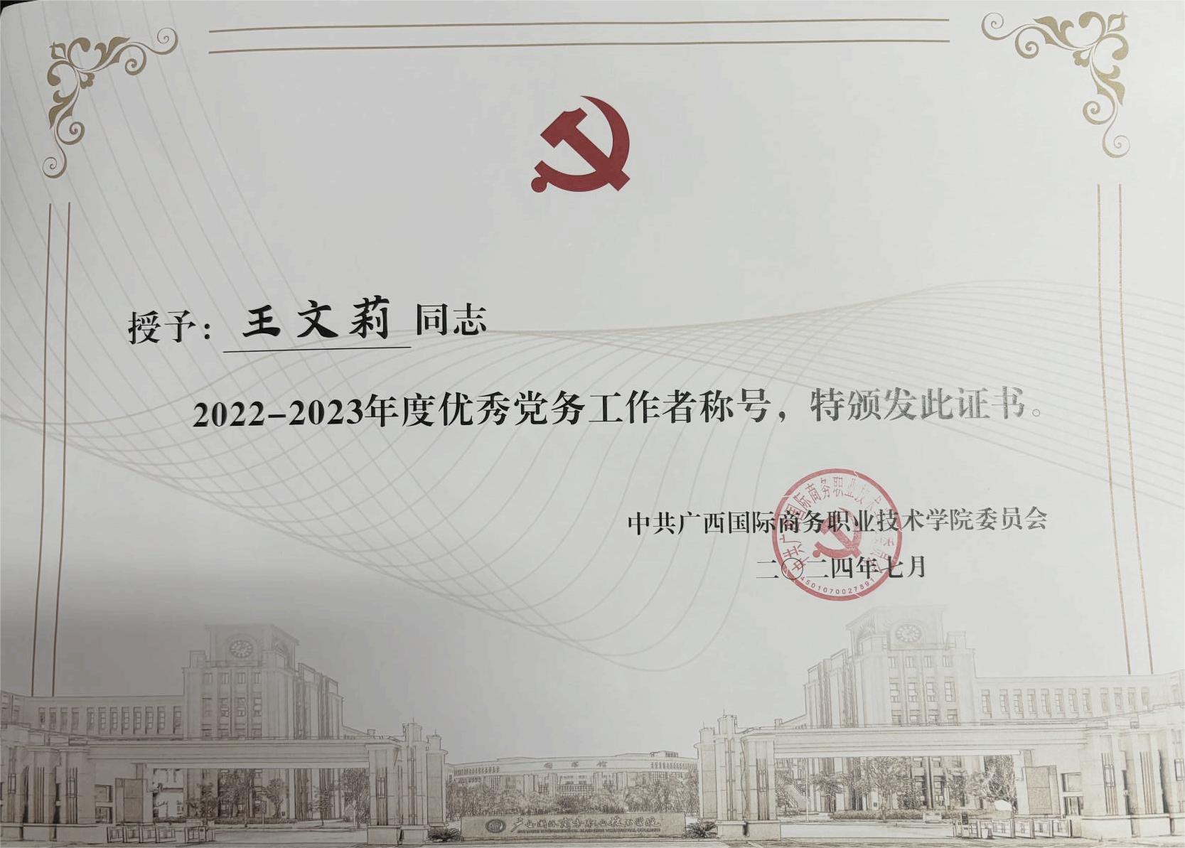 优秀党务工作者:王文莉、程琳丽