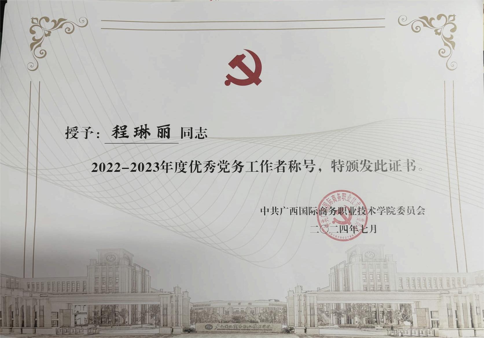 学校2022-2023年度优秀共产党员、优秀党务工作者和先进基层党组织评选工作,我院党组织传来振奋人心的喜讯,一批优秀的个人和集体脱颖而出,彰显了我校党建工作的卓越成效和党员的先锋模范作用。此次评选中,谢娉婷、谭丽君两位同志荣获“优秀共产党员”称号,王文莉、程琳丽两位同志荣获“优秀党务工作者”称号。他们在工作中始终坚守党的宗旨,以高度的责任感和使命感,在各自的岗位上默默奉献、发光发热。