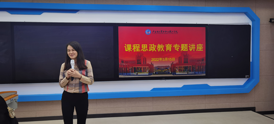 农敬萍首先以课程思政发展历程中的三个关键时间节点为顺序,分别为大家讲解了《高等学校课程思政建设指导纲要》、 《教育部关于学习宣传贯彻习近平总书记重要指示和全国职业教育大会精神的通知》等课程思政建设的理论依据文件。然后从教师素养、教学内容、教学改革、教学效果和教学特色五个方面阐述了课程思政建设的要领。她指出应坚持知识传授与价值引领相结合,新时代人才培养目标应当是价值引领、知识传授和能力培养的统一;需加强育人意识、找准育人角度、提升育人能力,除了传授学生基本的专业知识以外,更重要的是价值引领。