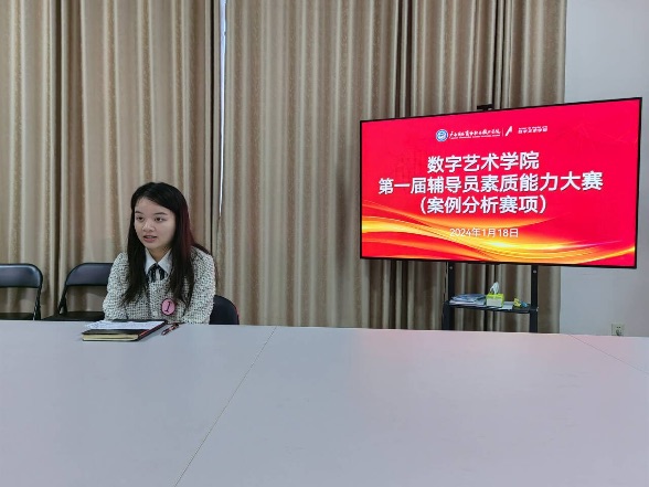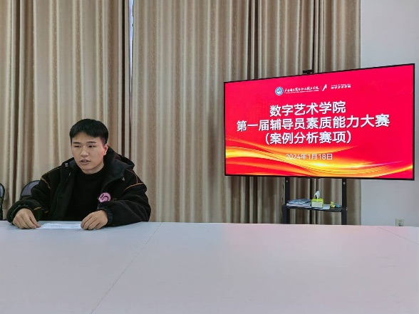 1月18日上午,为深入学习贯彻习近平新时代中国特色社会主义思想和党的二十大精神,全面落实全国高校思想政治工作会议精神,不断提高我院辅导员队伍专业化、职业化水平,数字艺术学院在大学路校区3栋308会议室举办第一届辅导员素质能力大赛之案例分析比赛。数字艺术学院团总支书记谭丽君、会计学院团总支书记葛蕊和应用外国语学院辅导员李桃祯担任评委,共8名校、企辅导员参加比赛。
