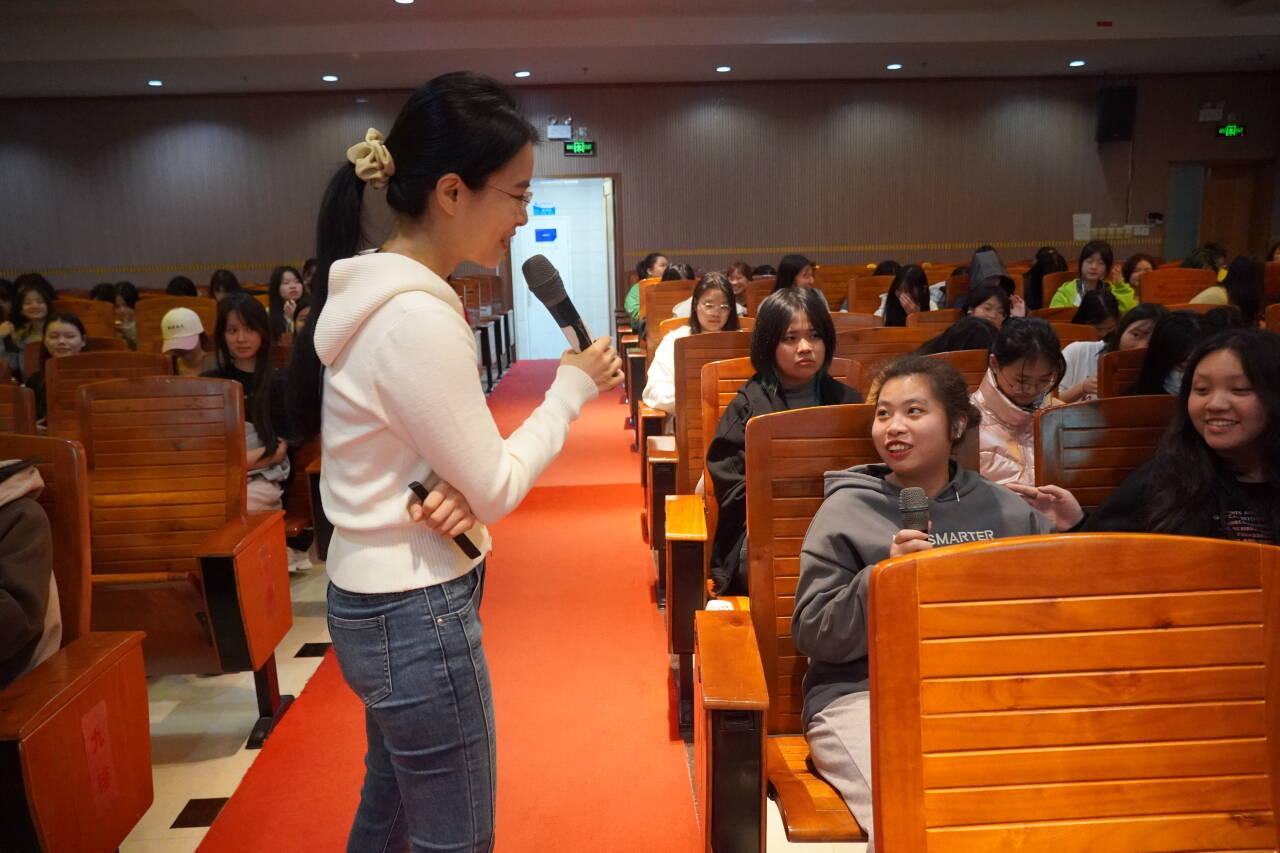 接着,黄雪雯通过对“爱的能力提升实操训练”展开讲解,通过游戏互动和知识问答等方式帮助大学生拨开两性关系的迷雾,引导同学们从科学的角度看待性心理的发展,分享如何培养和维护健康的性心理。