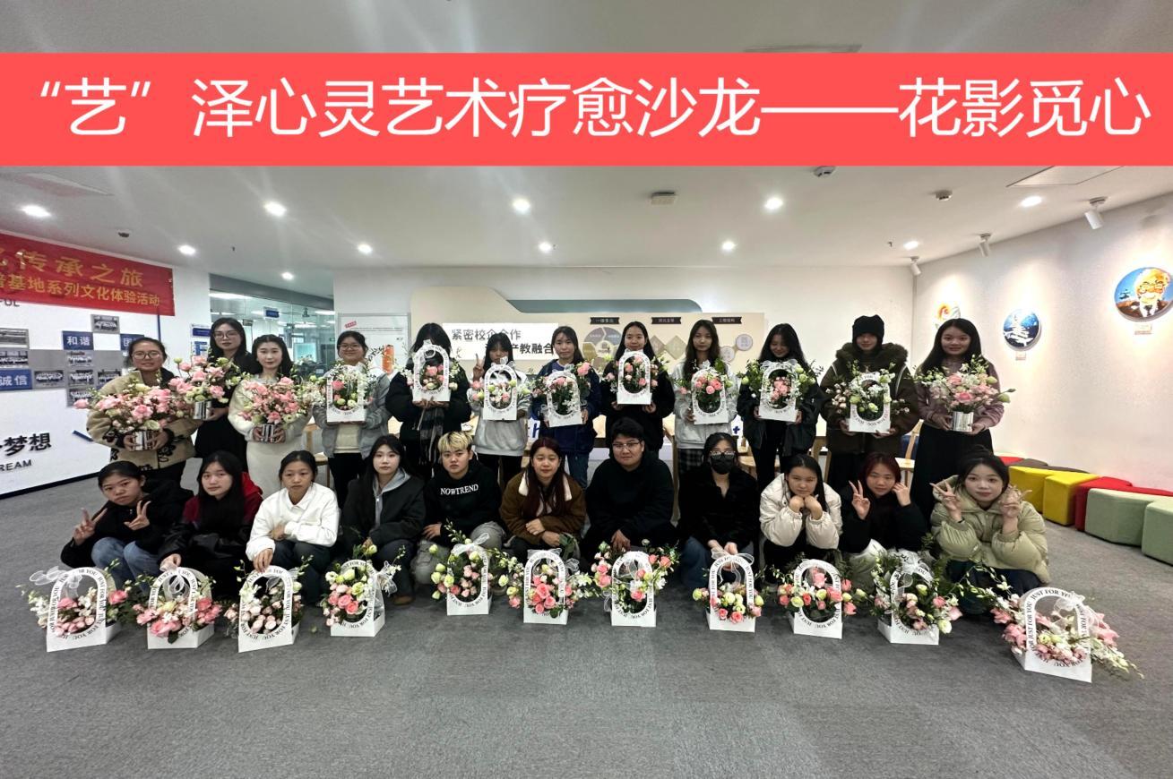 12月13日,以“花影觅心”为主题的心理插花活动也办得有声有色。活动现场,花香四溢,色彩缤纷。在老师们的带领下,同学们从选择花材、设计布局到动手插花,每一步都充满了创意与乐趣。同时,老师还结合插花过程,引导同学们深入探索自己的情感世界,学会用艺术的方式表达内心感受。此次活动,以花为媒,为同学们提供了一个独特的心灵滋养与情感释放的空间,感受自然与心灵的交融之美,收获满满的心灵慰藉与正能量。
