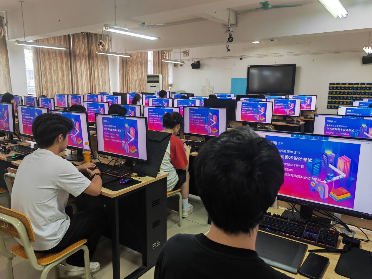 7月1日下午,为深入贯彻落实《国家职业教育改革实施方案》,切实推进教育部“1+X证书制度”试点工作,改革创新人才培养和评价模式,提高育人质量。数字艺术学院组织2023级和2024级动漫制作技术专业、2024级数字媒体艺术设计专业共计50名学生在大学东路校区4栋605室参加了全国职业技能等级证书1+X游戏美术设计(中级)考试。