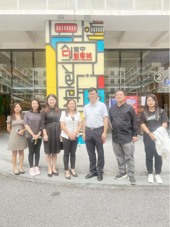 在企业方的安排下,双方在公司所管理的南宁创客城进行了对接。南宁广告产业园运营管理有限公司总经理助理覃慧丽、项目运营专员李敏捷、郑妮、唐廷雨等接待了黄恒拾一行。覃慧丽首先介绍了创客城的发展历程,创新服务对象、核心信息技术、园区运营项目、主题特色、企业文化及发展格局等情况,并引导参观了园区众创空间、高企孵化器等办公场地。
