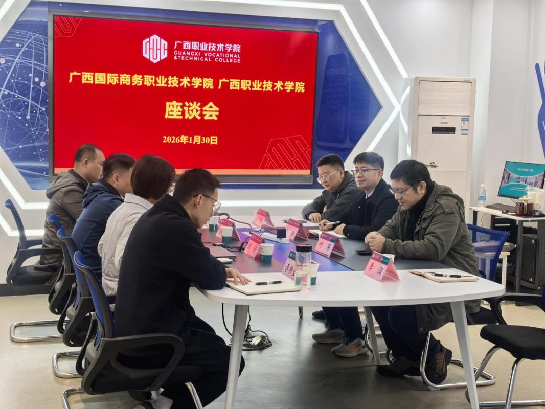1月28日,数字艺术学院吴涛、叶军、李润、陆兆洁、杨李明一行5人赴广西工业职业技术学院,围绕学院工科化转型路径、新专业教学改革及实训基地建设等核心议题开展专题考察交流。广西工业职业技术学院装备智造学院吴坚院长热情接待考察组,双方进行了深度务实的经验分享与思路探讨。参观实训场地考察组重点参观了装备智造学院的核心实训场地,包括工业机器人操作与维修实训室、数字孪生虚拟仿真实训室、智能制造集成应用实训室及全数字化生产线实训室等关键教学平台。在实地走访中,考察组详细了解了该校依托区级高水...【查看详情】