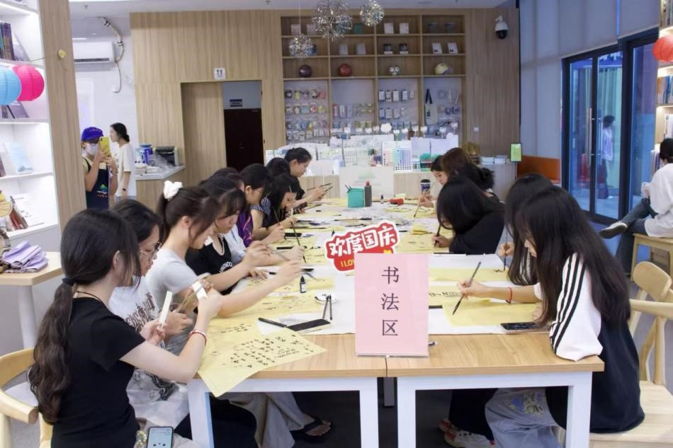 互动体验区洋溢着欢声笑语。猜灯谜活动巧妙融入文学知识与馆藏信息,寓教于乐;书法创作区内,师生们挥毫泼墨,将“花好月圆”“书香润心”等美好祝愿凝于笔端;手工制作区人气高涨,一个个精巧的花灯、钥匙扣在大家手中诞生,让传统工艺以灵动可爱的形式融入日常生活,为平凡时光增添雅致趣味。