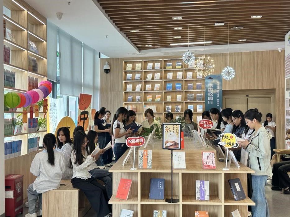 活动紧扣“传统节日与阅读推广双向赋能”理念,巧妙融合中秋文化元素与阅读推广内容。主题书展区作为探寻文化源流的窗口,精心陈列《荆楚岁时记》《月光下的思念》及中秋诗词典籍等百余册精选书籍,系统展现中秋佳节的历史脉络与人文内涵。师生们驻足翻阅,静心品读,在书香中完成与传统文化的深度对话。