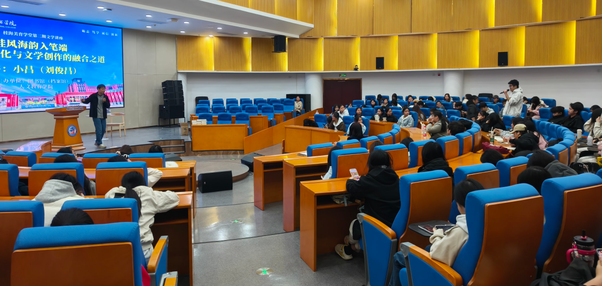 整场讲座内容详实、情感真挚,现场氛围热烈。同学们纷纷表示,从小昌老师的跨界经历与深刻见解中,不仅感受到了文学的魅力,更汲取了突破自我、追寻热爱的精神力量。本次讲座作为“桂海美育学堂”系列活动的重要组成部分,为营造浓郁的校园文化氛围、推动学校美育工作的内涵式发展起到了积极作用。