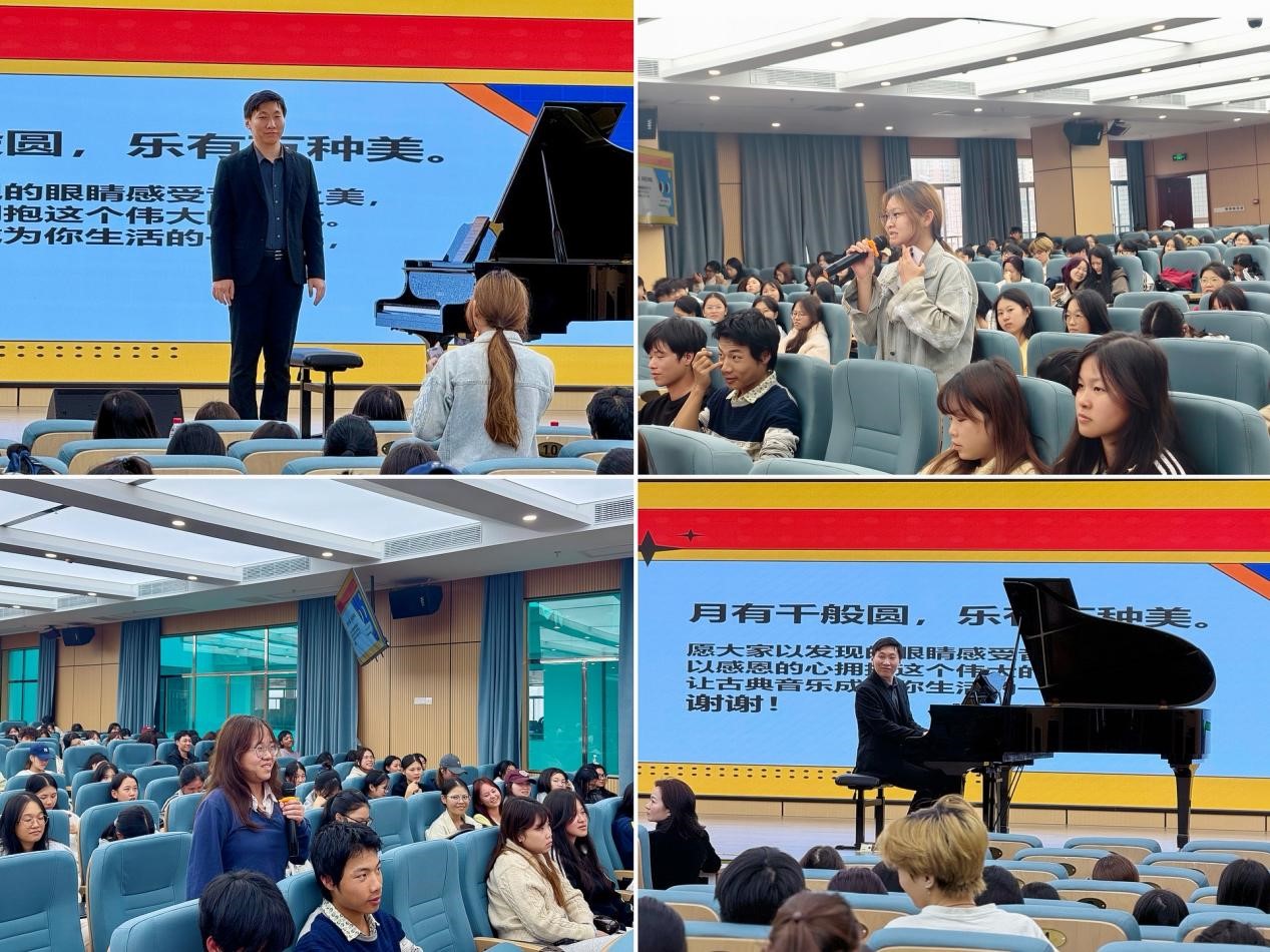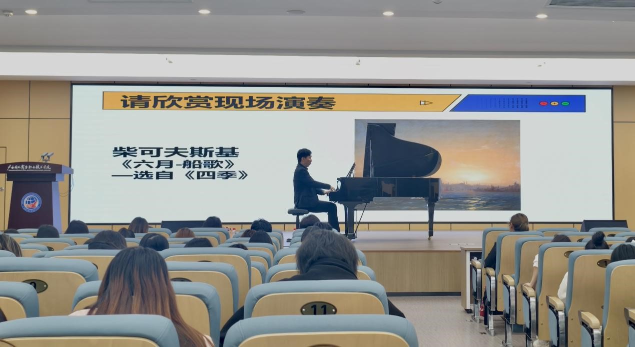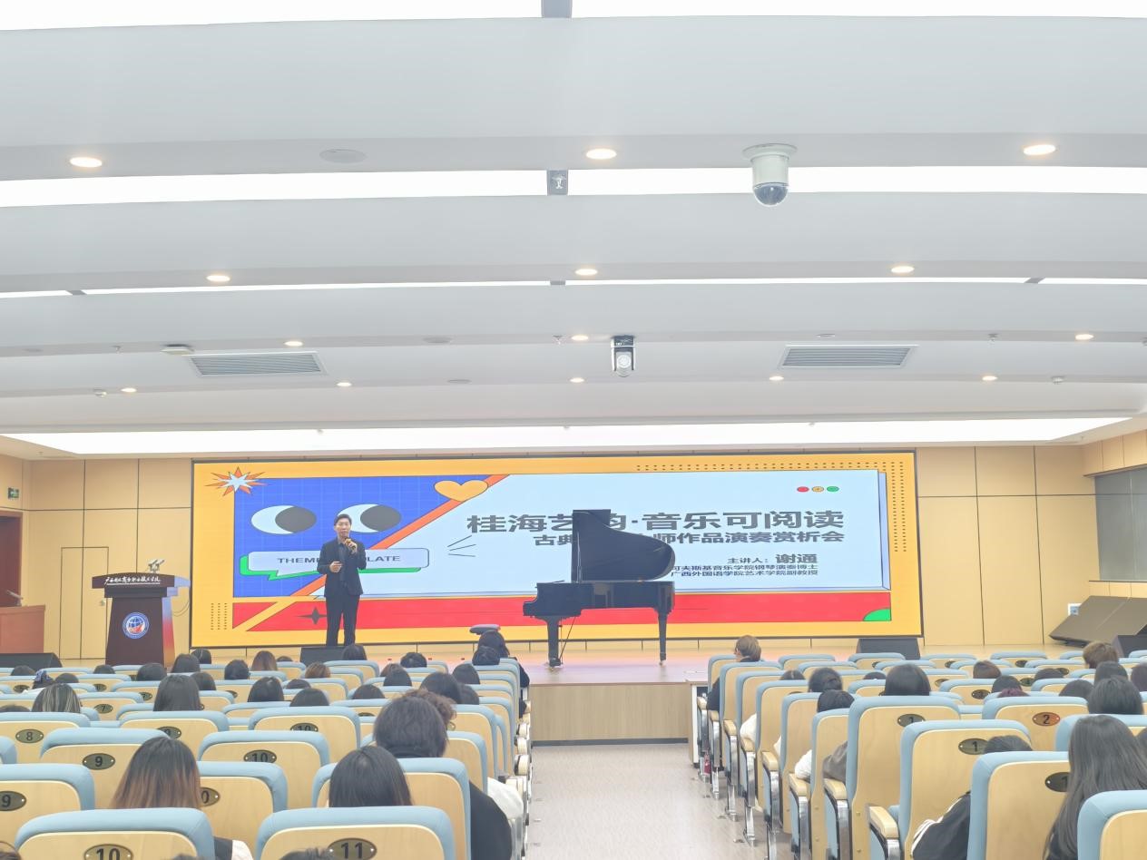12月3日下午,“桂海艺韵·音乐可阅读”古典音乐赏析会在大学路校区学术报告厅成功举办。活动由图书馆与人文教育学院联合主办,智慧信达、“艺”起“琳”听、丝路逐梦、语翼等辅导员工作室共同协办,特邀青年演奏家、莫斯科柴可夫斯基音乐学院钢琴演奏博士谢通担任嘉宾,以讲解与演奏并行的方式,引领师生走进古典音乐的殿堂,感受不同音乐时期的艺术魅力。