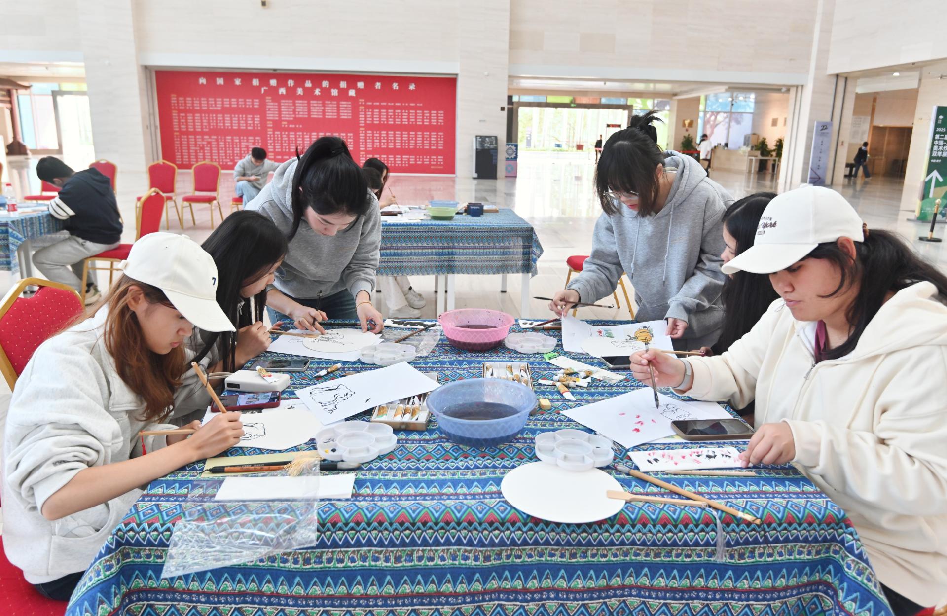 为深化美育育人成效,推动经典艺术融入校园文化生活,12月9日,我校图书馆第十二期“行走的阅读日”活动在广西美术馆成功举办。本次活动以国画美学体验为核心,通过观展导赏、知识讲授与亲手创作相结合的形式,为参与师生带来了一场“可观、可感、可创”的立体化艺术阅读之旅。