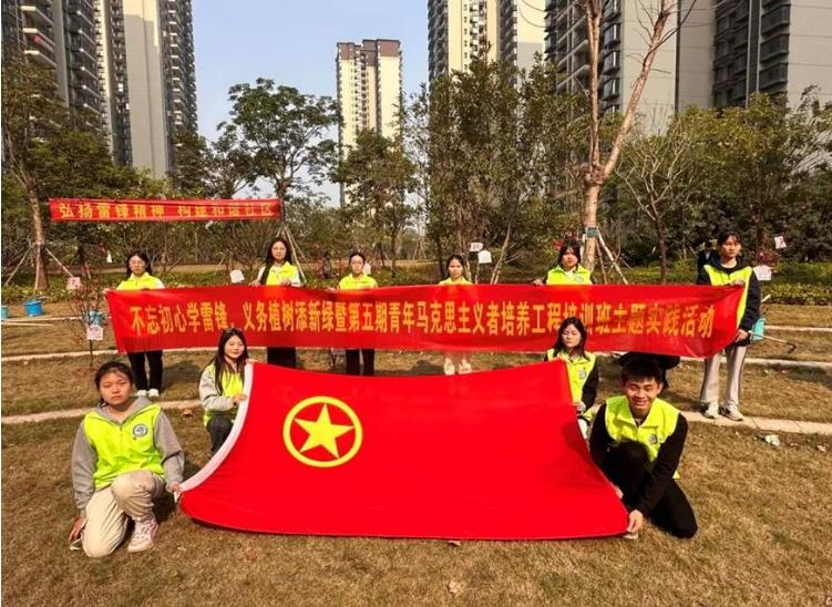 今年是毛泽东等老一辈革命家为雷锋同志题词60周年,为深入学习宣传贯彻党的二十大精神,贯彻落实习近平总书记关于学雷锋志愿服务的重要论述,进一步培育和践行团员青年的社会主义核心价值观,大力弘扬雷锋精神和志愿精神,给我们的城市建设作贡献,给我们的家园增添绿色,培养团员青年关注绿化、重视环保,提高青年学生的使命感、责任感,2023年3月10日,学校团委组织第五期青年马克思主义者培养工程培训班学员前往广西东盟经济技术开发区上平社区开展“不忘初心学雷锋,义务植树添新绿”主题实践活动。