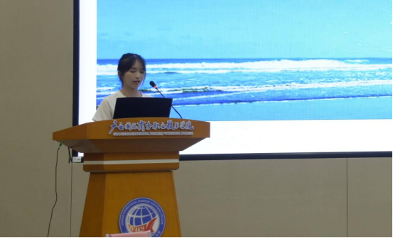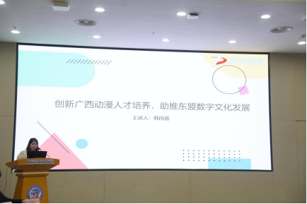 数字艺术学院2021级动漫制作技术2班学生韩雨露作主题发言:“创新广西动漫人才培养,助推东盟数字文化发展”。