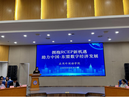 应用外国语学院2021级商务英语1班学生李丽作主题发言:“拥抱RCEP新机遇,助力中国-东盟数字经济发展”。