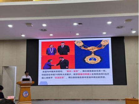 国际交流学院留学生王立峰作主题发言:“RCEP给泰国经济社会带来的新机遇”。