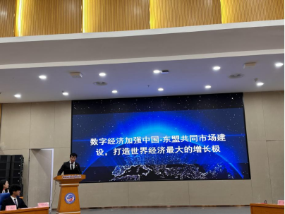 现代流通学院2022级汽车营销与服务1班学生莫通乐作主题发言:“数字经济加强中国-东盟共同市场建设,打造世界经济最大的增长极”。