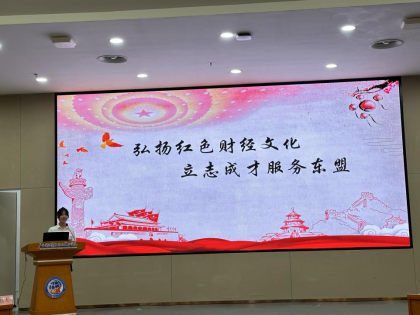 会计学院2021级财务管理7班学生蒙碧慧作主题发言:“弘扬红色财经文化,立志成才服务东盟”。