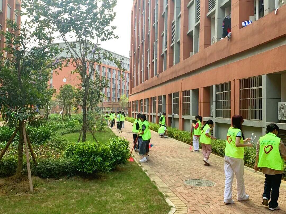 志愿者在清扫学生宿舍