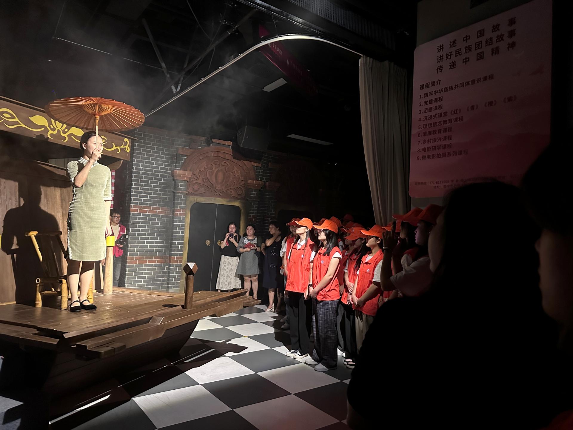 走进电影党校,“红船启航”“爱南宁 爱电影”“电影里的民族画卷”等红色教学场景一幕幕展现在眼前,师生们在“建党初心—红船启航—新青年—青春信念—新时代青春之歌—黄文秀—青年群像”等沉浸式教育的课程中,观看聆听了中国共产党在不同历史时期“浴血奋战、不怕牺牲”“主动作为、勇挑重担”“革故鼎新、建设四化”“踔厉奋发、担当使命”的故事。