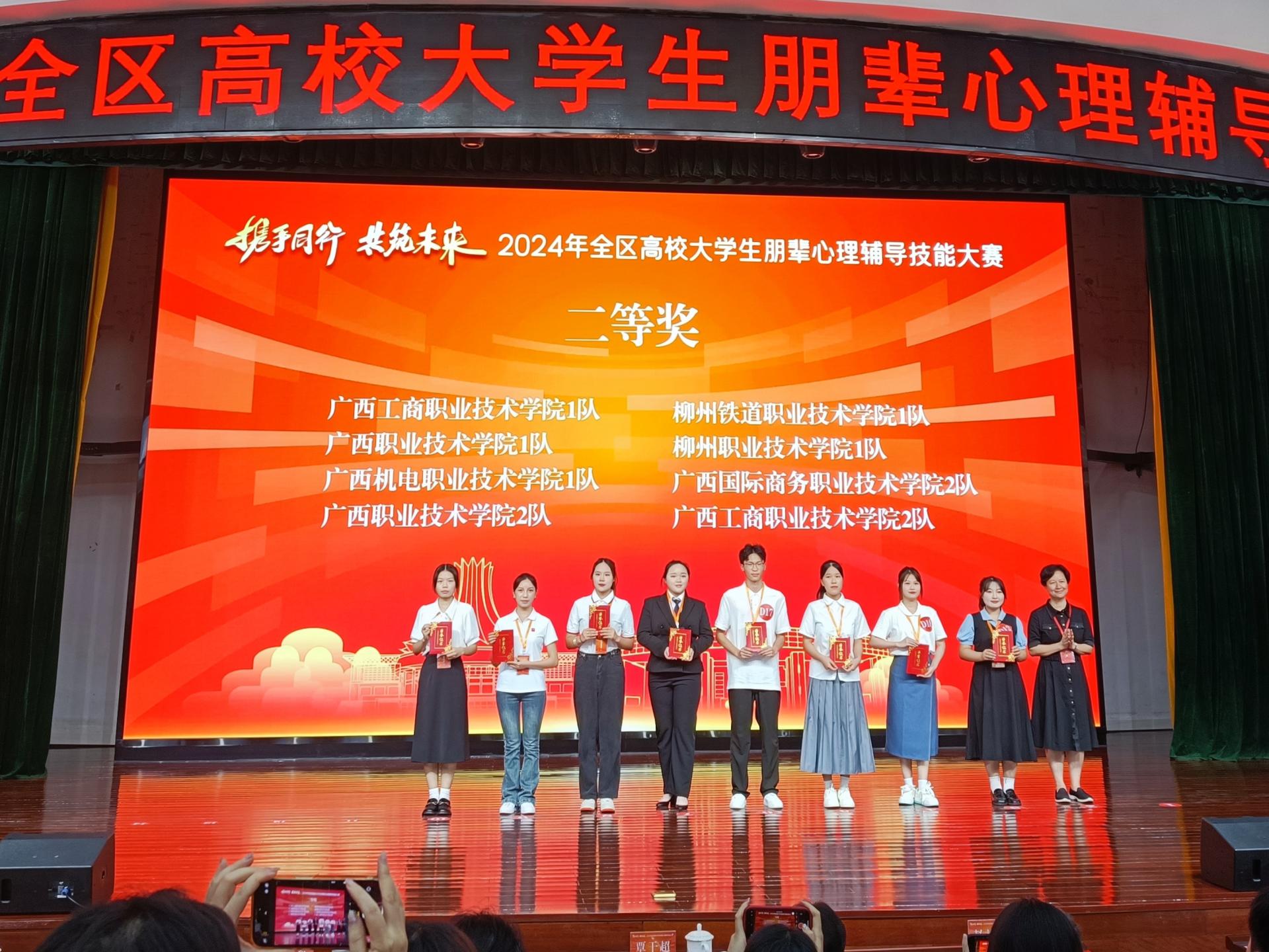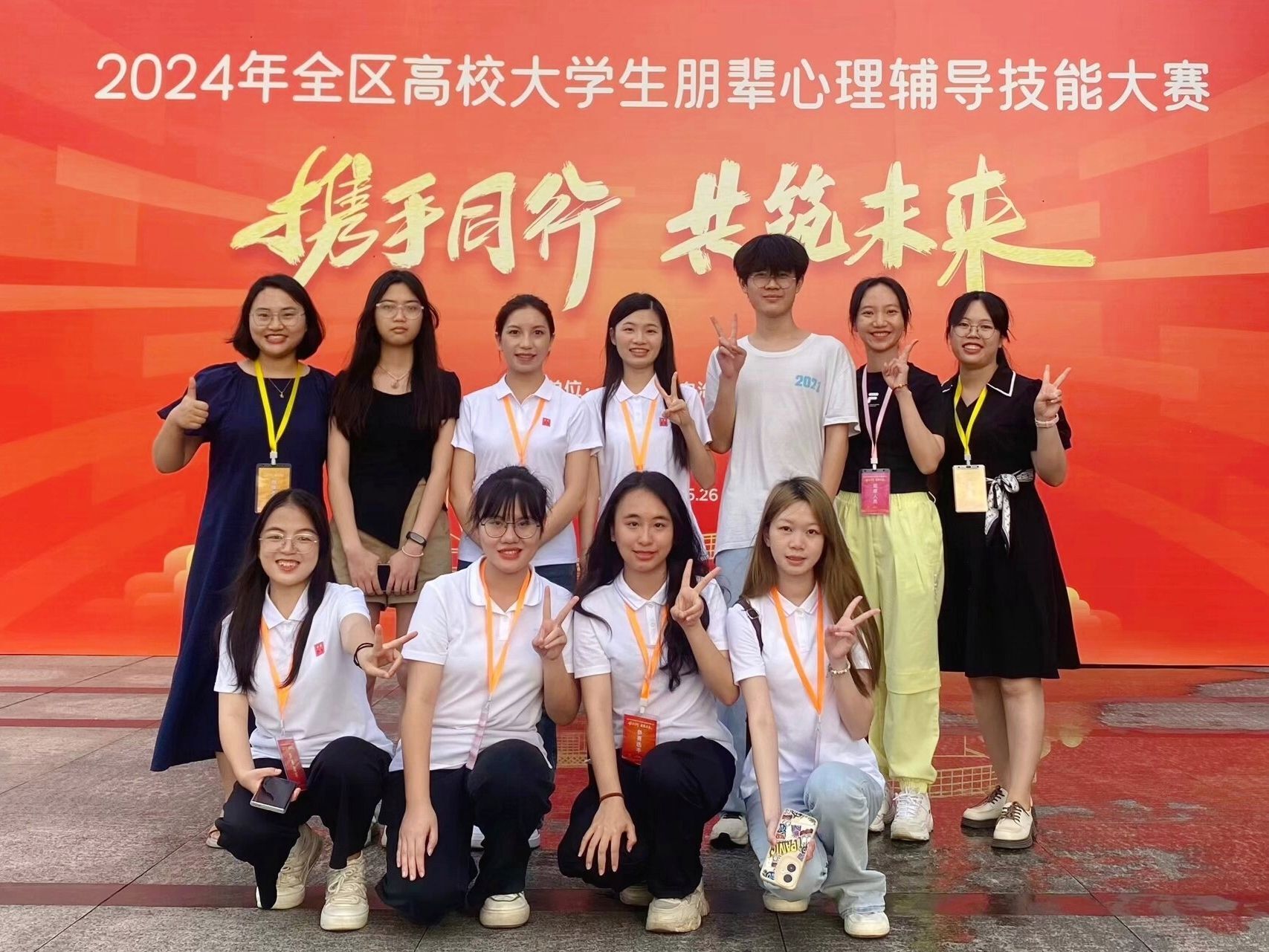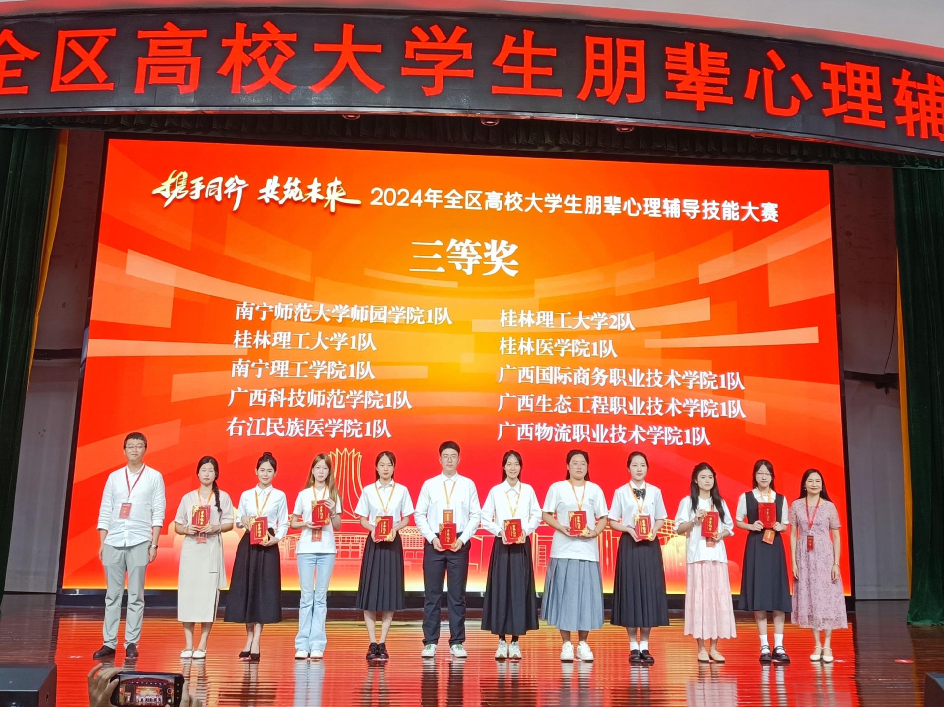 5月25日、26日,由自治区教育厅主办、广西财经学院承办的全区高校朋辈心理辅导技能大赛在南宁成功举办。来自全区78所高校的109支队伍参赛,我校两支队伍共6名选手经过激烈角逐,最终荣获大赛二等奖1项、三等奖1项。
