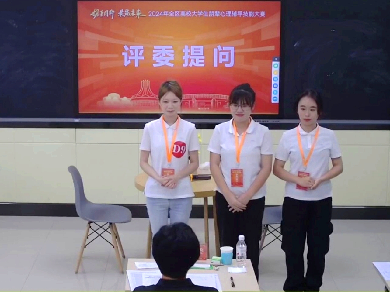 大赛中朋辈心理辅导现场模拟评委提问环节