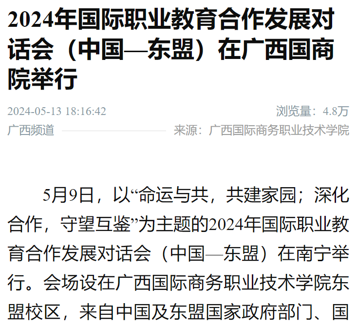 【广西台都市频道】2024年国际职业教育合作发展对话会(中国-东盟)举行
