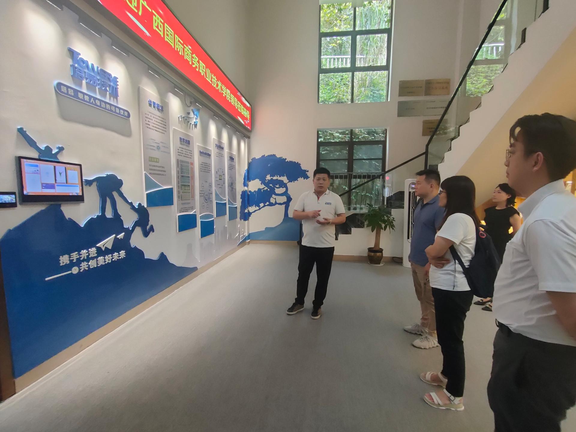 首先,在企业领导的带领下,李冬书记一行参观了企业成果展示中心及企业荣誉墙,由广西塔易信息技术有限公司副总经理龙振宁介绍了公司的发展历程、发展现状、未来规划了解企业的核心技术和校企合作成果;技术总监颜靖介绍了公司在技术研发、社会服务、校企合作、人才培养方面的做法和成果。