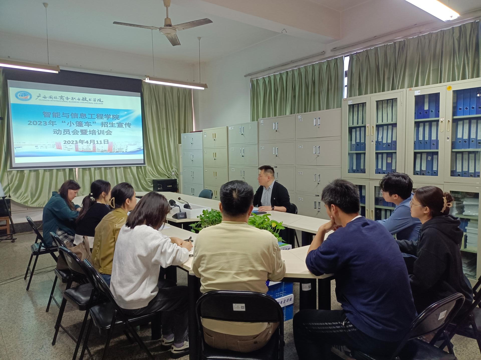 为确保招生宣传工作的顺利进行,学院于4月11日下午在3栋208召开2023年“小篷车”招生宣传动员会暨培训会,会议由学院党总支副书记李冬主持,参与本年度招生宣传工作的老师参加了会议。