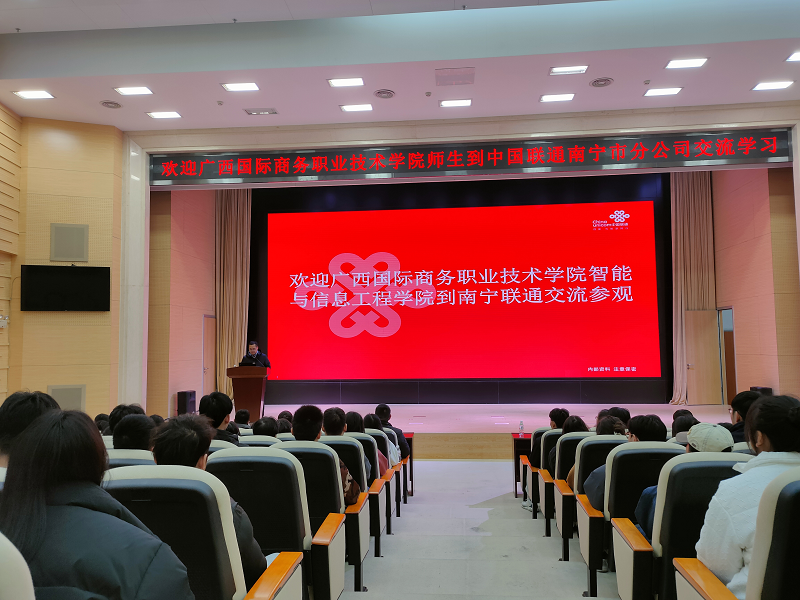 为响应学校教学改革创新规划的号召,提前布局创新人才培养,实现实践教学与专业基础有机结合,同时让学生更深入了解企业人才招聘需求和大数据、信息安全专业发展前景。12月20日下午,在智能与信息工程学院副院长郑蕾、副院长周菊瑄、校企合作企业深圳市瑞视云智科技有限公司项目负责人徐小明带领下,学院师生120余人前往中国联通南宁分公司开展研学交流活动。