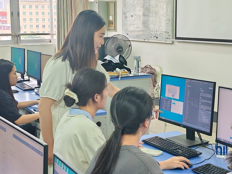 “以前调试CSS样式要花很长时间,现在用AI工具快速生成建议代码,效率提升了很多!”一位大一学生兴奋地分享道。实训现场,各小组还通过AI绘图工具设计家乡特色插图,将地域文化与现代技术相结合,作品兼具美观性与实用性。