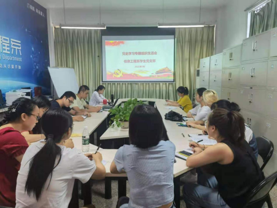 根据习近平总书记关于党史学习教育重要讲话和重要指示批示精神,按照党中央部署、自治区党委党史学习教育领导小组办公室和学校党委的要求,7月14日,信息工程系学生党支部召开党史学习教育专题组织生活会,全体党员参加会议,信息工程系党总支书记陆云飞出席本次会议并作点评。
