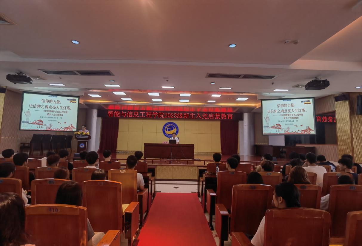 为进一步加强党的政治建设,落实立德树人根本任务,深化大学生理想信念教育,上好入党第一课,系好思想“第一扣”,9月10日上午,智能与信息工程学院在图书馆11楼报告厅召开2023级新生入党启发教育,3-112,4-101,4-103,4-106教室以远程会议形式线上同步进行。党总支副书记李冬为全体2023级新生作入党启发教育,会议由学生党支部书记陶菲主持。