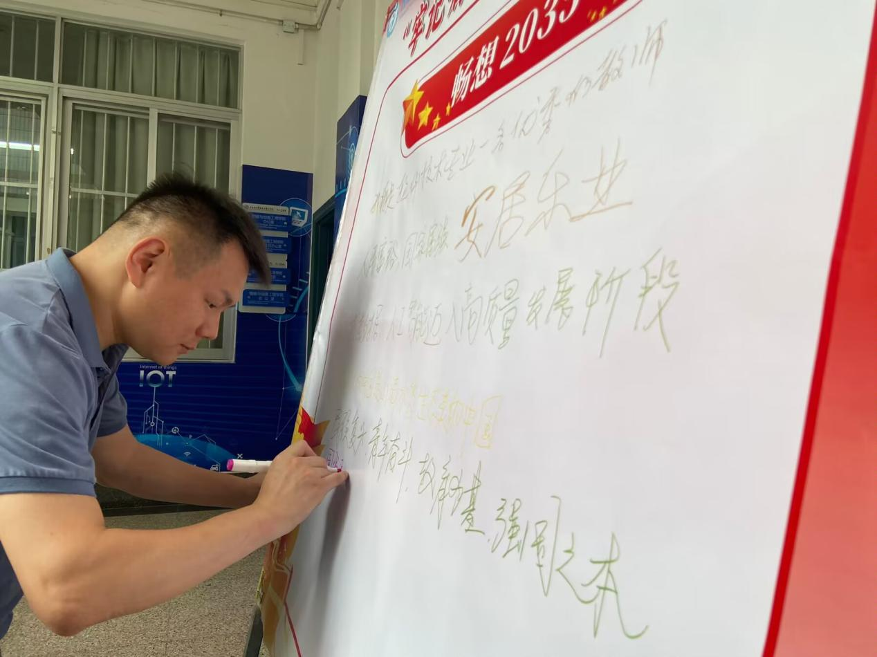 活动现场,党员教师、团总支学生干部结合人生志向、价值取向、成长方向,深入思考和讨论“民族复兴,青年何为”“强国建设,教育何为”,并通过撰写心愿畅想2035,眺望2050,进一步明晰“请党放心,强国有我”的实现路径和人生方向。