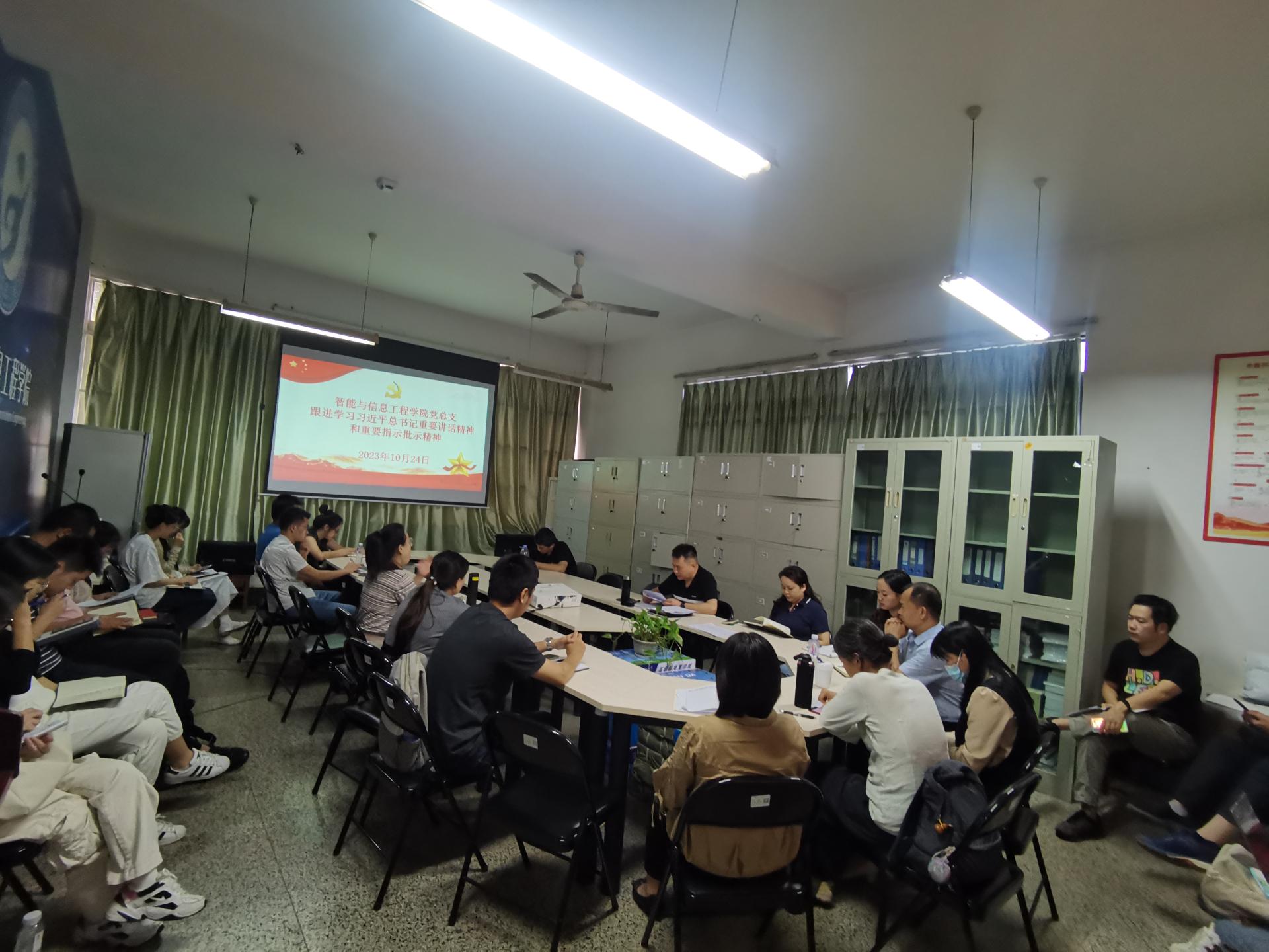 为深入学习贯彻习近平新时代中国特色社会主义思想,10月24日下午,智能与信息工程学院党总支召开会议认真传达学习习近平总书记在中央政治局第八次集体学习时的重要讲话精神、习近平总书记在浙江、山东枣庄考察时的重要讲话精神、习近平总书记在江西考察时的重要讲话精神、习近平总书记对宣传思想文化工作作出的重要指示,会议由学院党总支副书记李冬同志主持并领学,学院全体教职工参加会议。