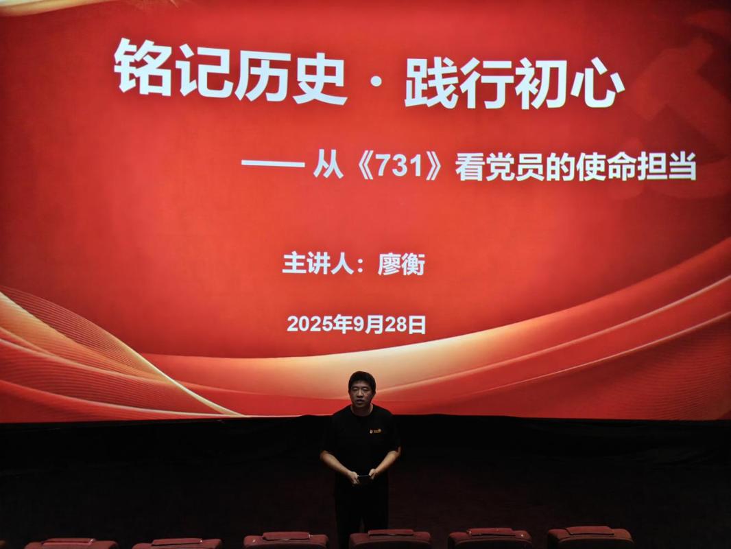 为铭记世界反法西斯战争的伟大胜利,弘扬伟大抗战精神,引导党员干部铭记历史伤痛,坚定理想信念,凝聚奋进力量,9月28日,人工智能学院党总支组织全院党员及入党积极分子开展“铭记历史伤痛,砥砺初心使命”主题党日活动,通过微党课学习与观看历史题材电影《731》相结合的形式,让全体党员沉浸式学习,激发爱国情怀,强化使命担当。