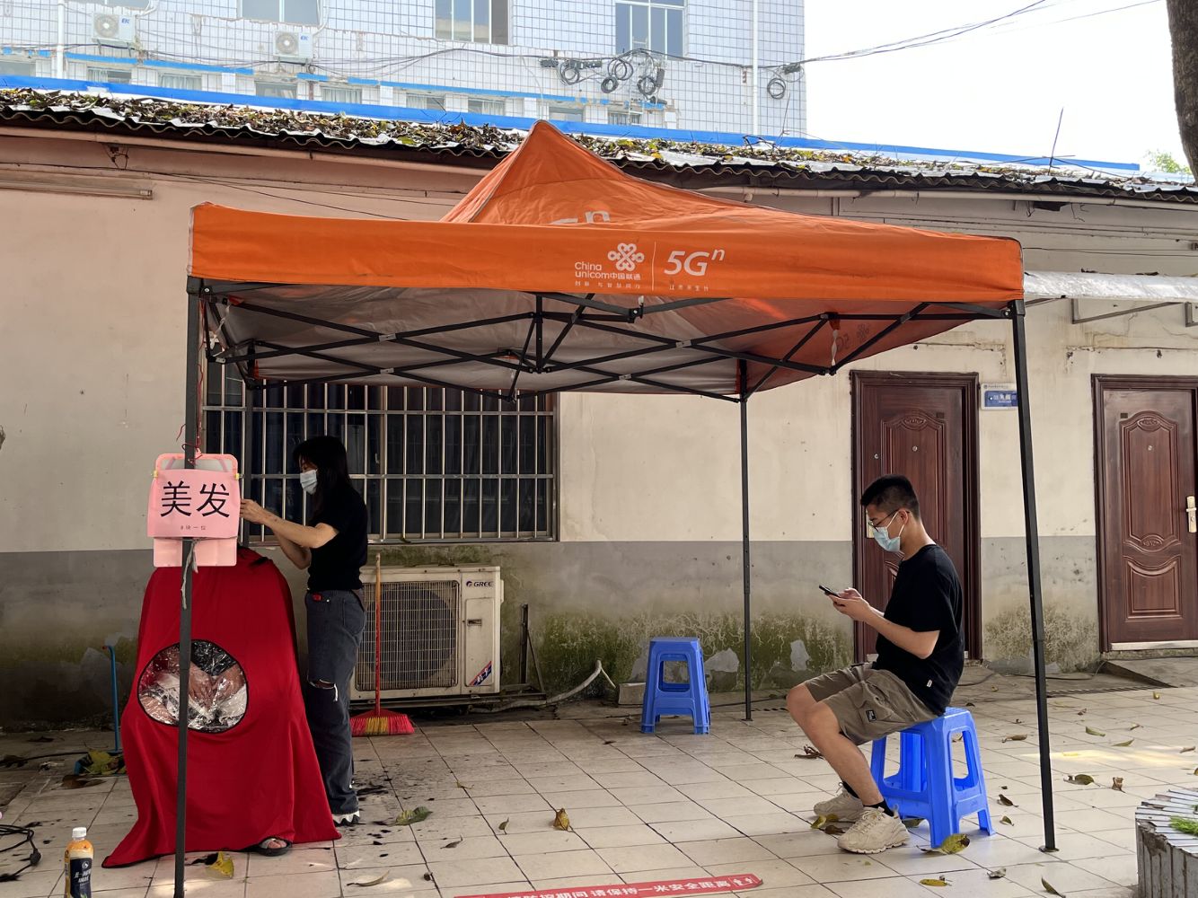 为保障学生们的身体健康,严格落实疫情防控要求,学院对引进的理发师、电脑手机维修师傅进行身份审查、健康码行程卡检查、近14天详细行程核查、48小时内核酸检测阴性报告、体温测量、工具消毒等层层关卡,确保安全才可进入公寓区。同时,安排辅导员值班,维持现场秩序,避免人员聚集。