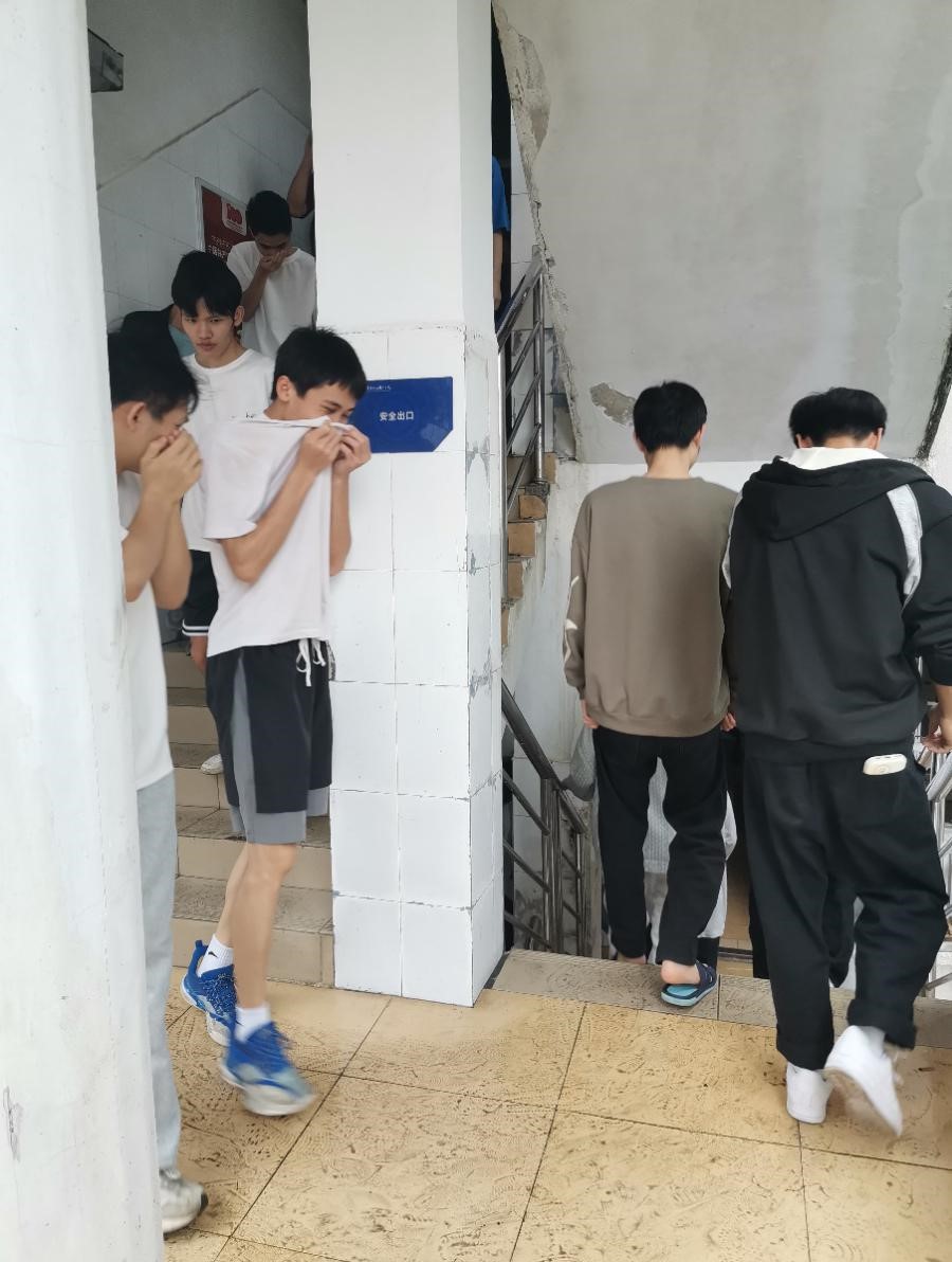 随后,校园内开始响起消防警报声,老师迅速按照紧急预案的疏散路线指引同学们用湿毛巾捂住口鼻,弯腰小步快走,有序沿着制定逃生路线进行撤离。