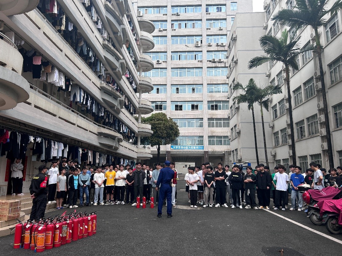 消防演练撤离后,莫宗茂警官认真讲解了手提式干粉灭火器的规范操作和灭火技巧,并邀请辅导员和同学们进行灭火体验。大家纷纷进行实操灭火练习,进一步提高了自己的消防应急知识和自救能力。