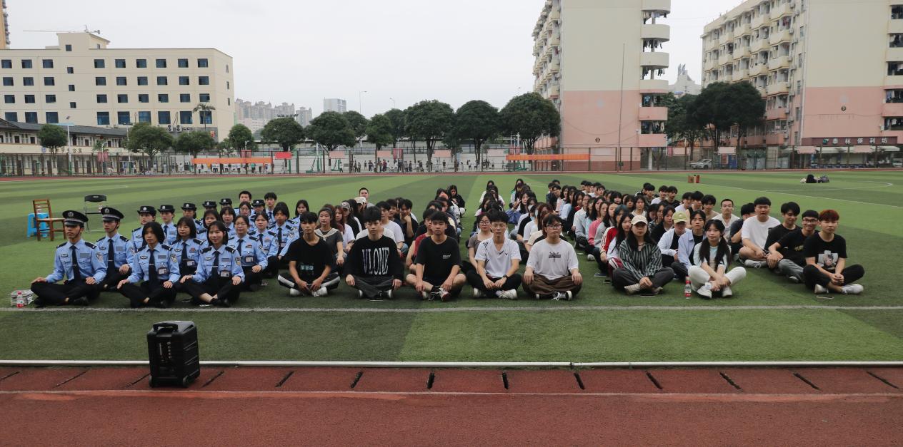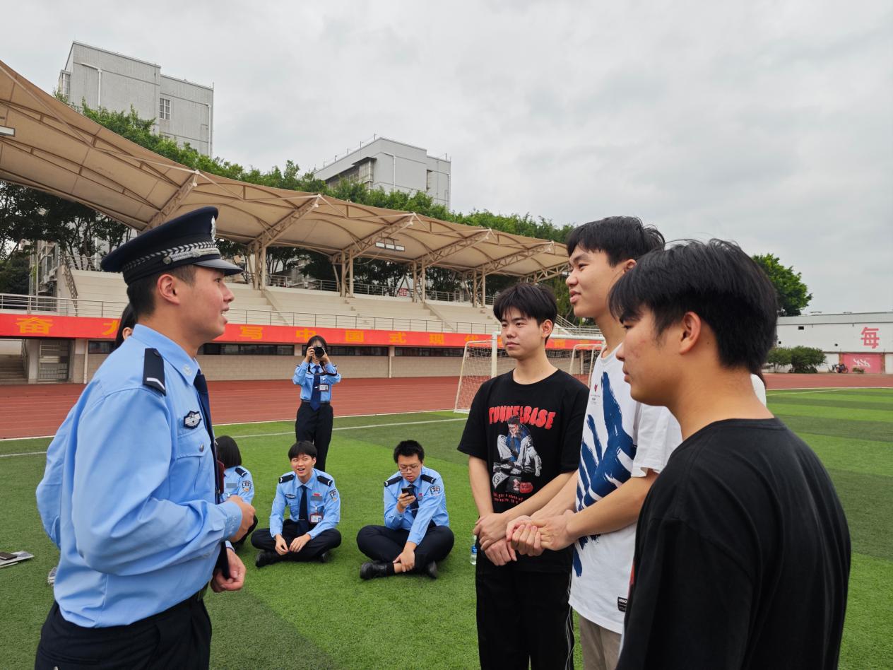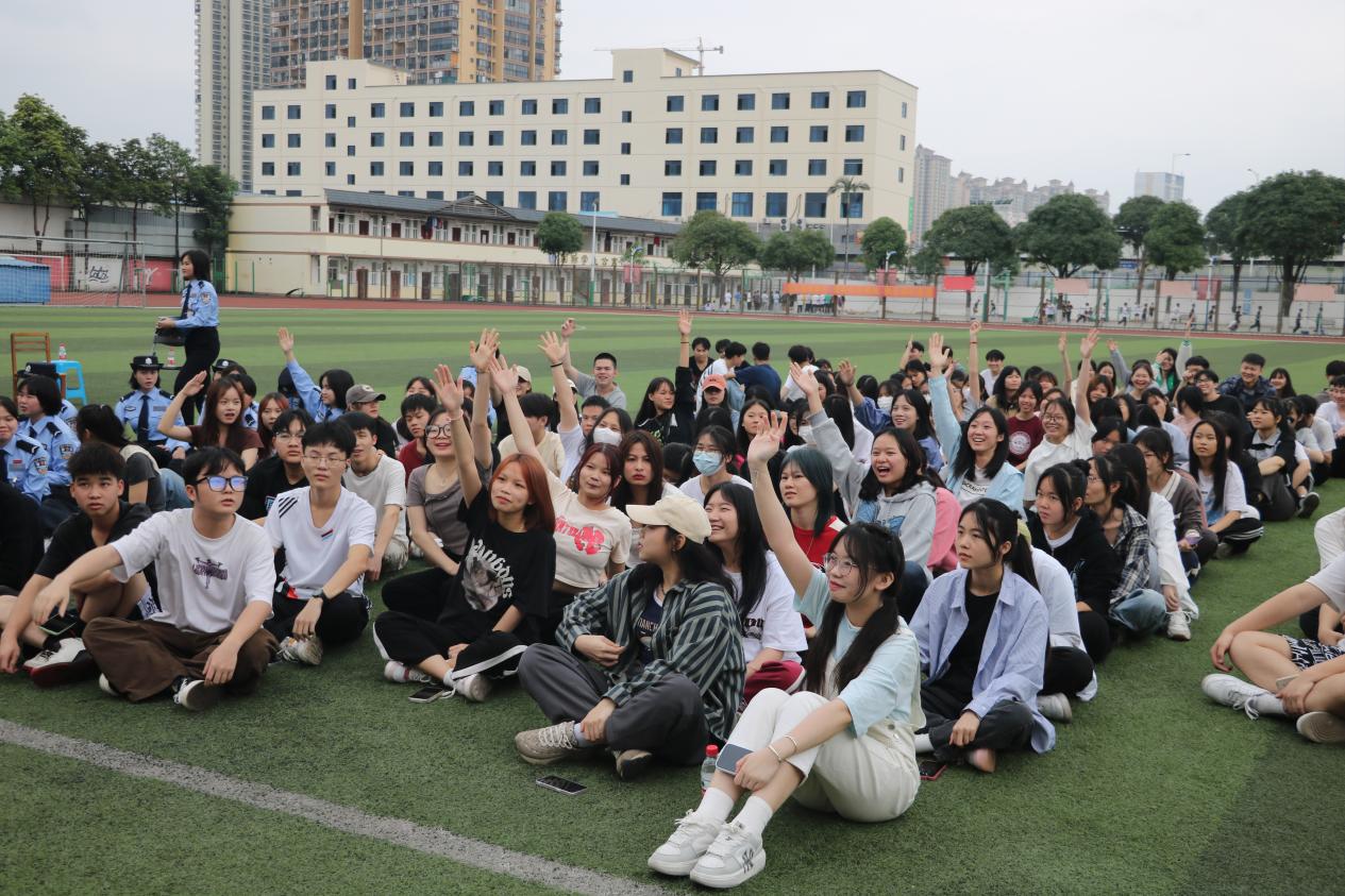在第八个全民国家安全教育日到来之际,为了进一步提高学院师生安全意识,掌握安全知识,营造安全教育氛围,预防和减少事故发生,确保师生生命和财产安全,4月13日下午,广西警察学院司法应用学院28名学生干部到我院进行交流学习,在田径场为我院学子进行了安全普法活动。
