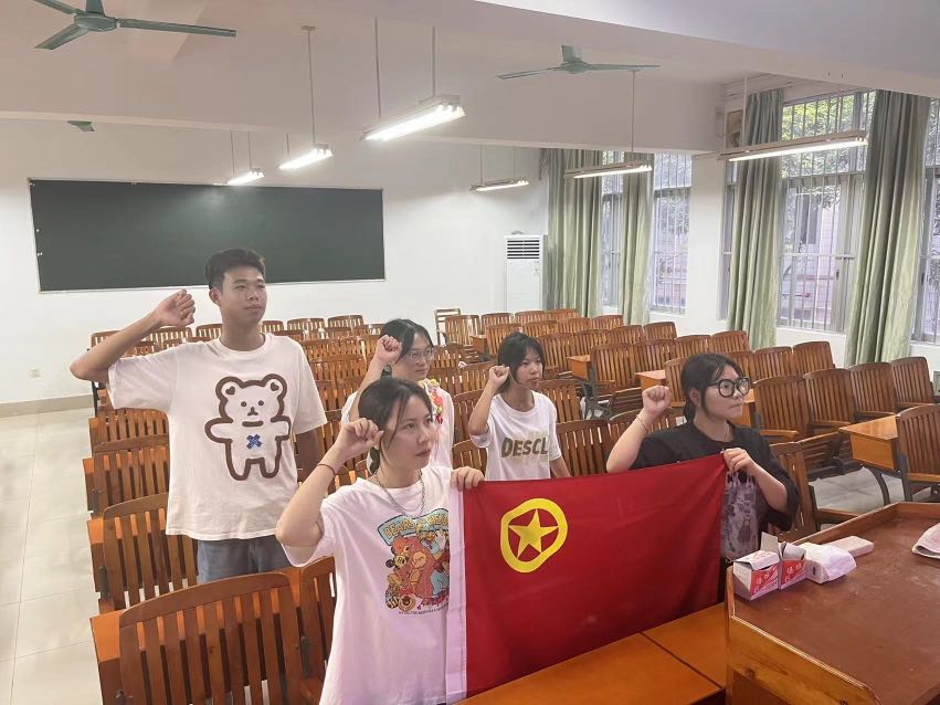 各班级主持人首先说明了举行入团仪式的意义,之后宣读《团章》中有关共青团员义务和权利的条款,并宣布新共青团员名单,对他们加入中国共青团表示热烈的欢迎。随后,新、老团员们举起右拳、面向团旗庄严宣誓,用铿锵有力的誓言表达了成为一名共青团员的责任与担当。